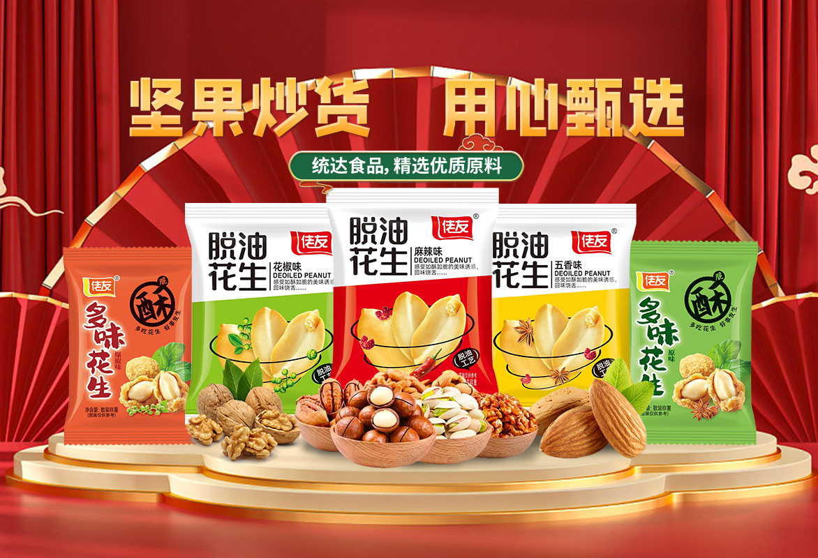 洛陽市統達食品有限公司創建于2013年,坐落于風景秀麗的嵩山腳下,東依省會鄭州、隴海、焦枝兩大鐵路在此交匯,西連高速,洛界高速,縱橫東西南北,207國道,交通便利。當地環境優美。經濟繁榮昌盛,實為興業辦企,鴻運福順的好地方。少林寺,白馬寺,龍門石窟,玄奘故里等名勝古跡星羅棋布,近在咫尺,盡展千年華夏文明?! ∥覐S是一家集生產,研制,銷售為一體的食品加工企業,總投資1500萬元,廠房占地面積5000平方米,員工100余人,其中技術人員20余人,年加工能力達1500余噸。公司以堅果炒貨為主導,自主三大品牌:統達牌、紅仁館牌、佬友牌和授權品牌速達,主要產品有酒鬼花生系列,麻辣花生系列,香辣酥系列,果仁裹粉類系列,怪味胡豆系列,蠶豆、青豆系列等多個品類。產品暢銷全國各地,深受用戶好評。產品選自上等原料經多次精選而制,秉承濃郁的特色風味,保留其原材料的營養和原汁原味,富含不飽和脂肪酸和人體必需的氨基酸和鋅元素,不含膽固醇,黃曲霉素,不添加防腐劑、著色劑;具有濃郁獨特的香味,是真正的“從土地到餐桌”的健康食品。產品特點:色澤金黃,顆粒飽滿,然后經多種工藝加精良的天然配料精制而成,鎖生產出來的產品既保持著產品的獨到的口味,又不失產品天然的營養成分,滋味純正,辣椒鮮紅食之麻,辣,香,酥,甜,口感獨特,食后滿口生香,欲罷不能。久食不厭,老少皆宜,居家旅游,佐食配茶,宴賓饋友之佳品,深受廣大顧客歡迎和贊揚?! ∥覀儗⒁跃康墓に嚕茖W的管理,嚴格的質量控制,優異的品質保障,以誠信,創新,勤奮,求實的企業精神,立于強者之林,迎接新的挑戰。以飽滿的熱情迎接與你的合作。 本公司“以質量求生存,以誠信求發展”歡迎有志之士加入我們的團隊,攜手共創美好明天!